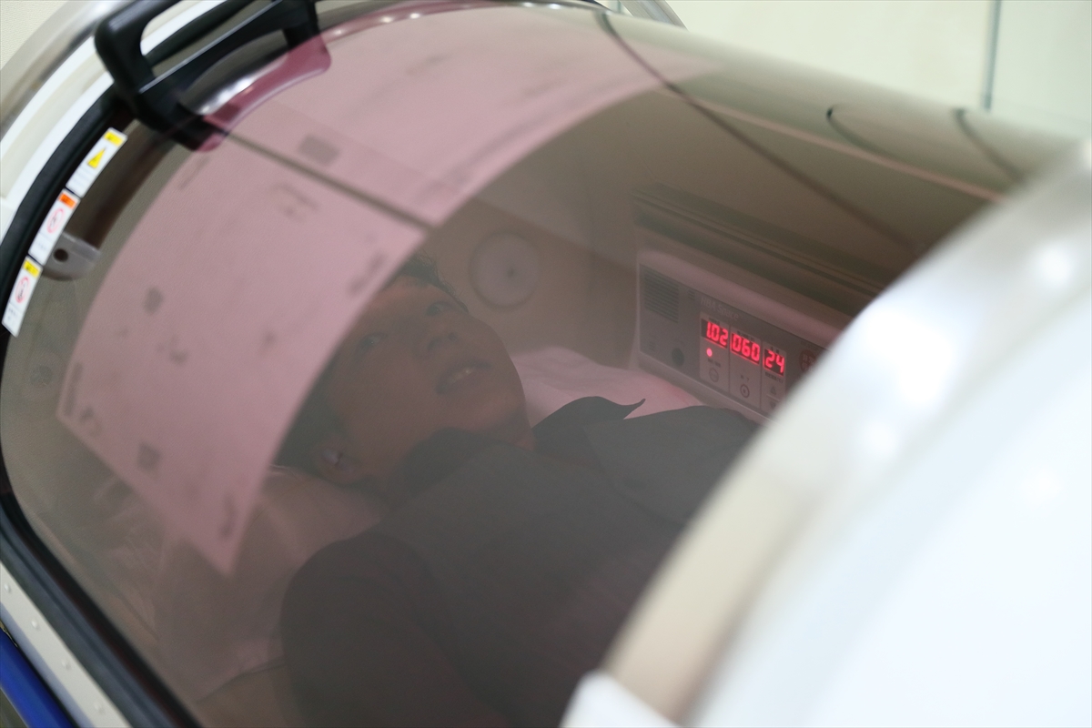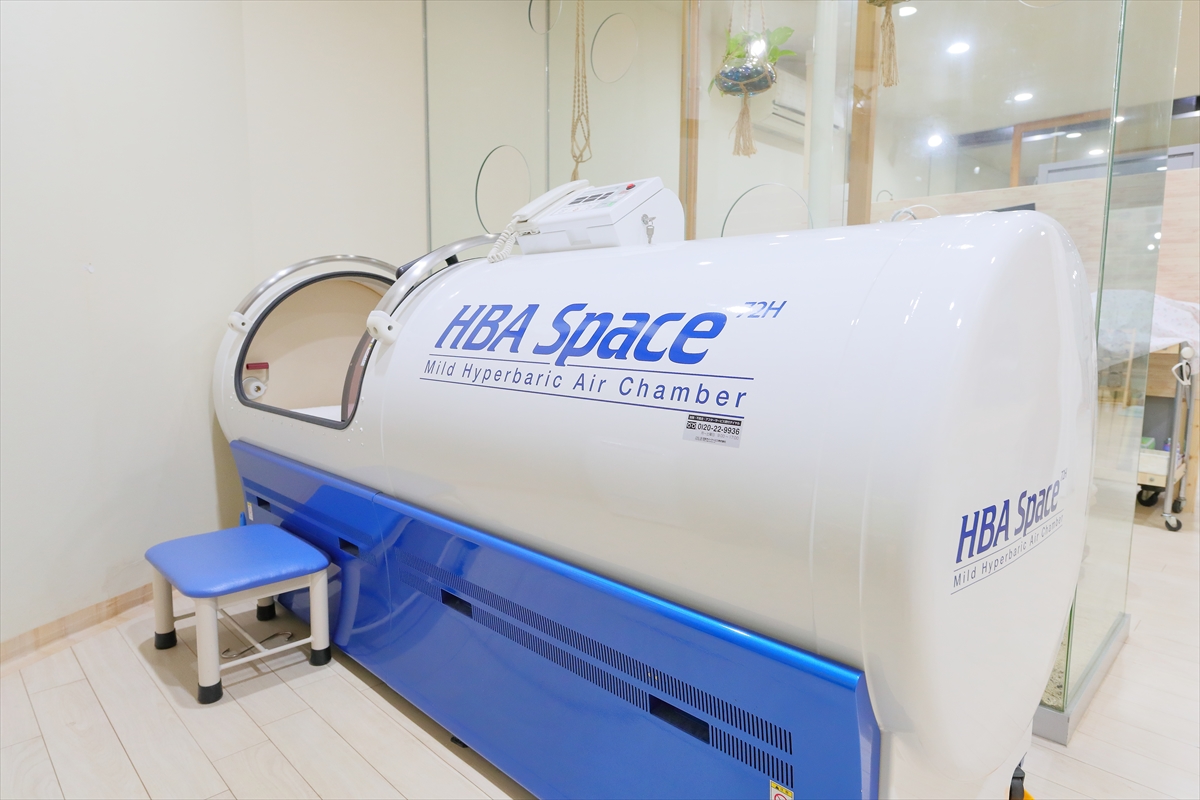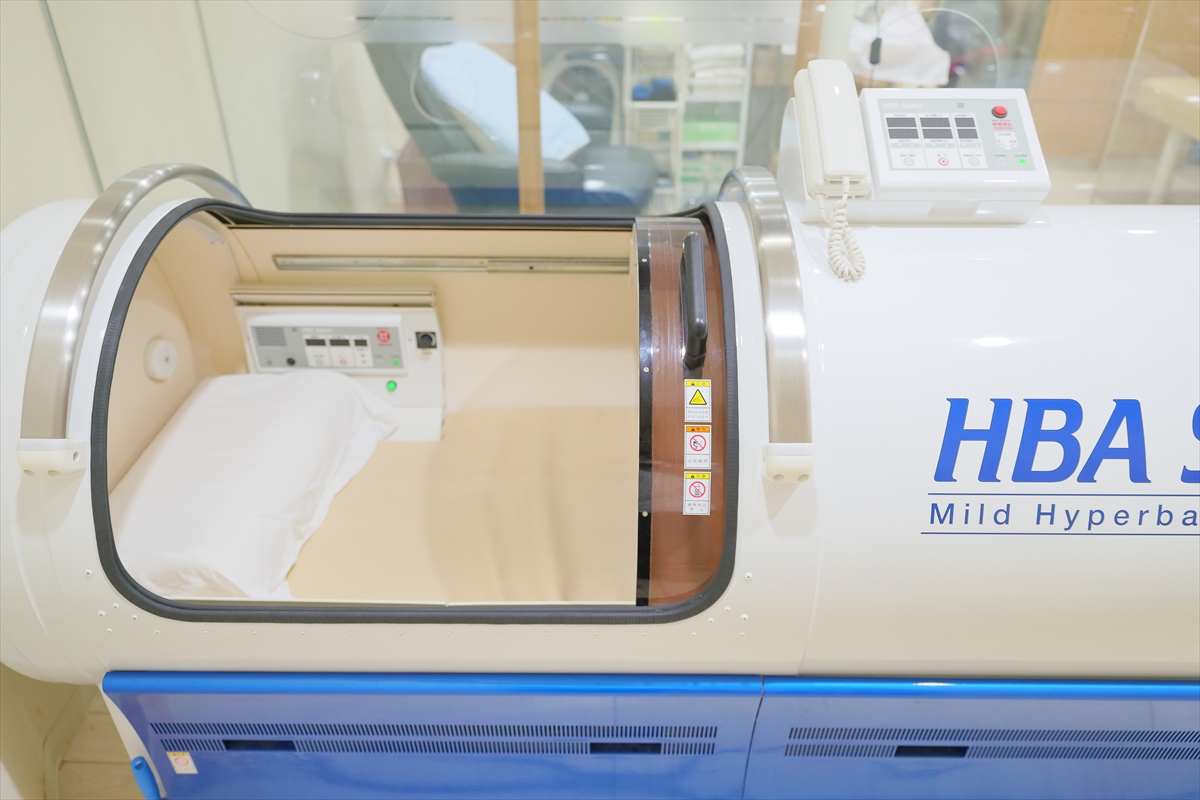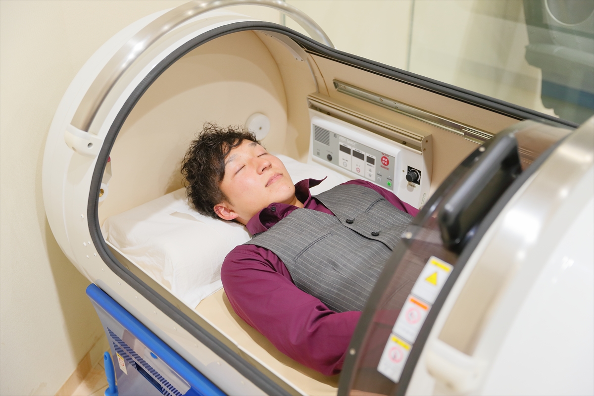 空気中の酸素を気圧を高めることによって酸素が細かくさせる「酸素カプセル」。